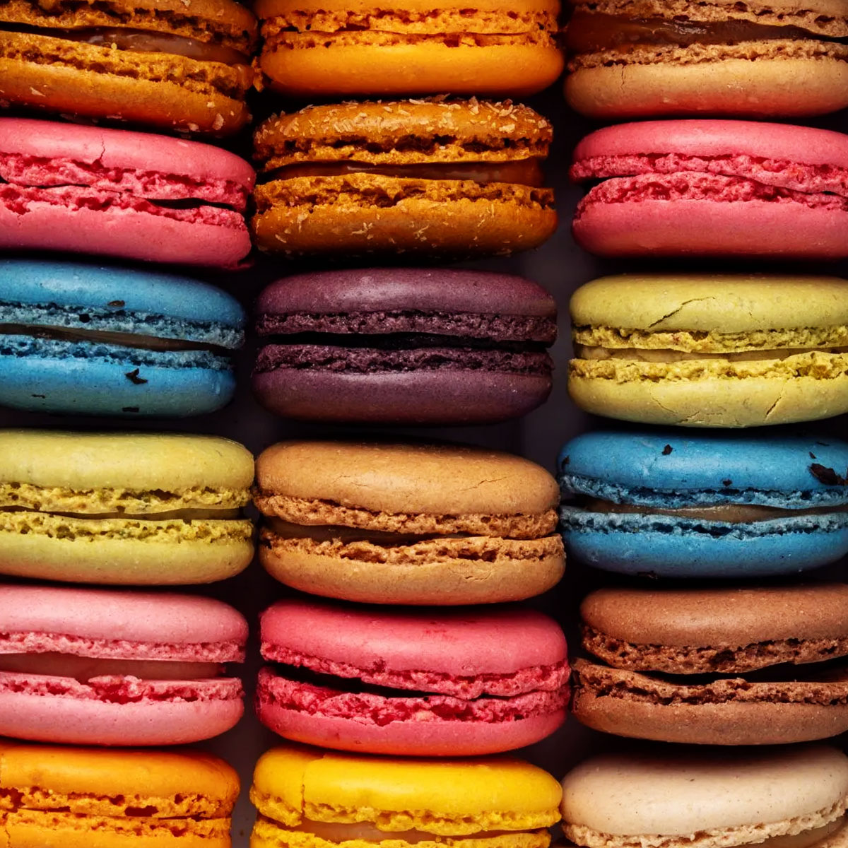 - Macarons are sandwich cookies made from egg whites, almond flour, and sugar.